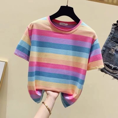 超受欢迎的条纹韩式宽松圆领短袖T恤