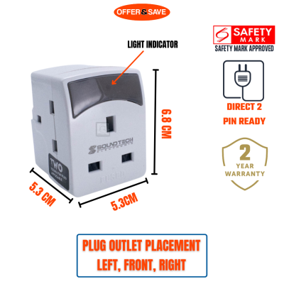 [2年保修]Soundteoh 3路多适配器插头,带开关,带开关按钮